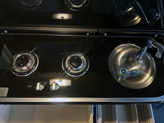 Cocina de 2 Fuegos a Gas, Nevera y Fregadero