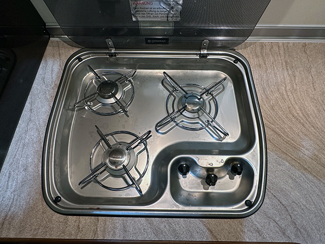 • Cocina de 3 Fuegos a Gas, Fregadero, Horno y Nevera de 154 Litros